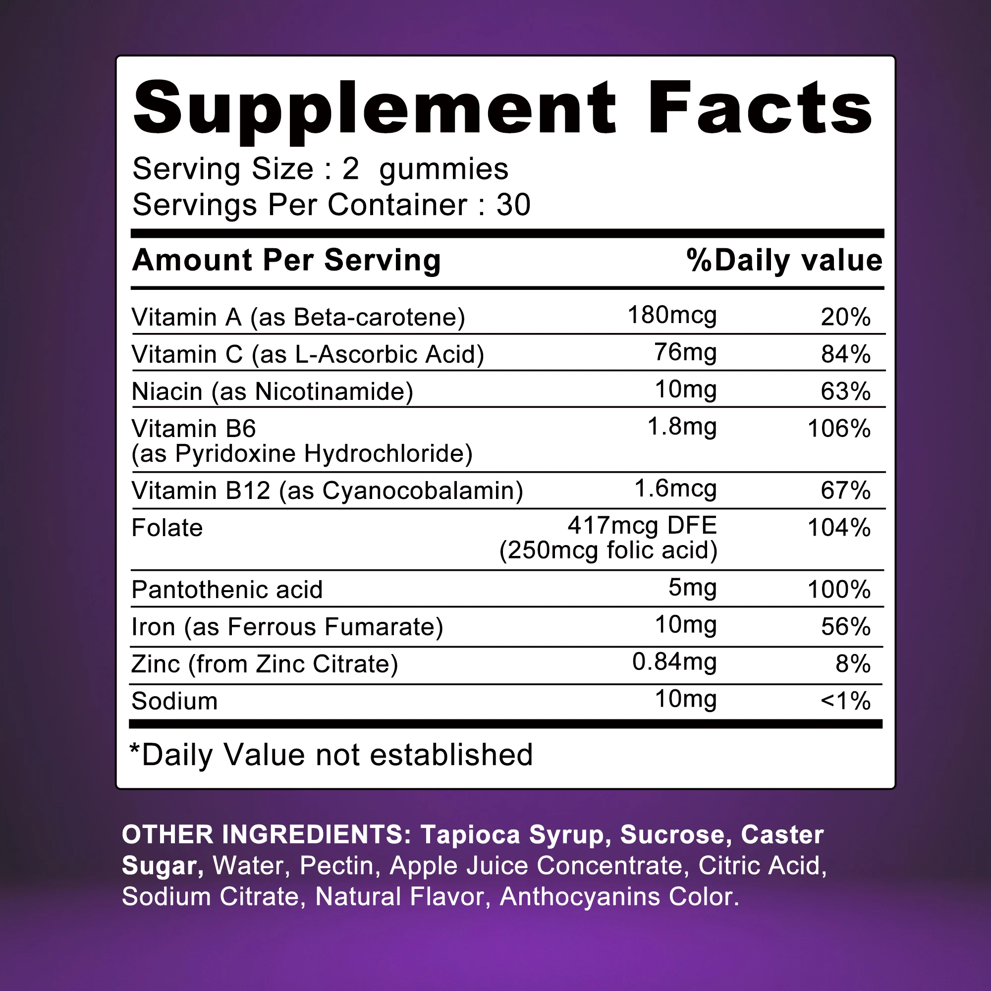 Ingredients: Iron, zinc, vitamin B6